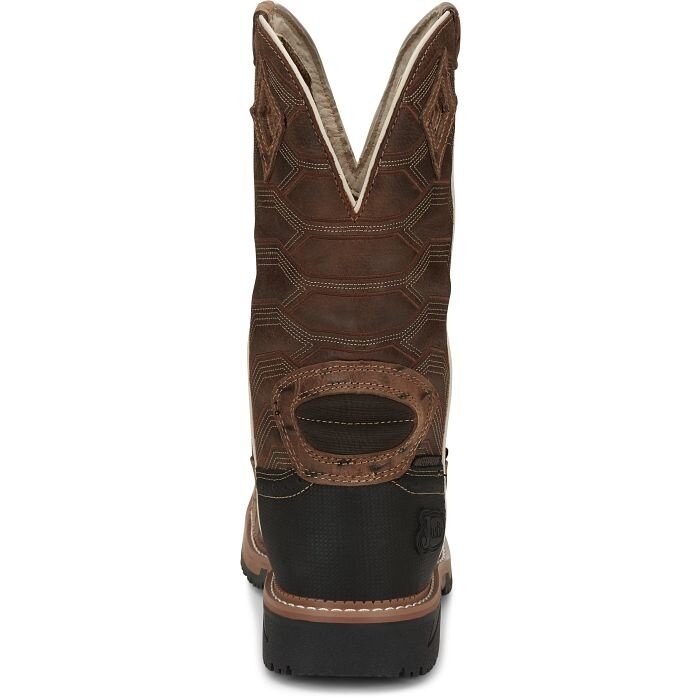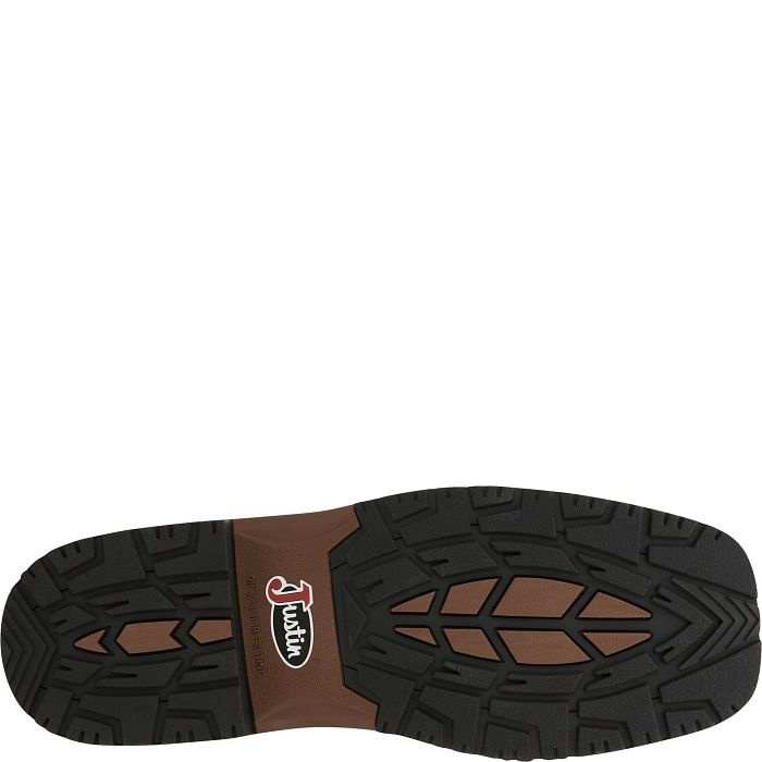 Inside, this boot features layers of comfort with a J-Flex Flexible Comfort System® insole, the Justin Stabilization Technology®, Ortholite® Comfort Foam insole, and a Dri-Lex® cover. Its multi-density rubber and EVA combination outsole offers lightweight durability. This boot also provides an Achilles Relief System® that eliminates weak spots in foot comfort by using stretchable material, high-density foam, and moisture-wicking anti-microbial lining to provide flexibility, support and breathabilitythe Hybred® Orthotic insole provides all-day comfort. This boot meets ASTM F2892-11, EH safety footwear standards.