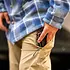 - Reinforced webbing at right pocket for securing pocket knife