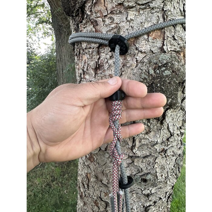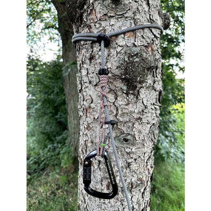 - TreeLok: Helps keep the tether perfectly secured in ideal position on tree while moving around in the saddle, preventing any slack or drop town.