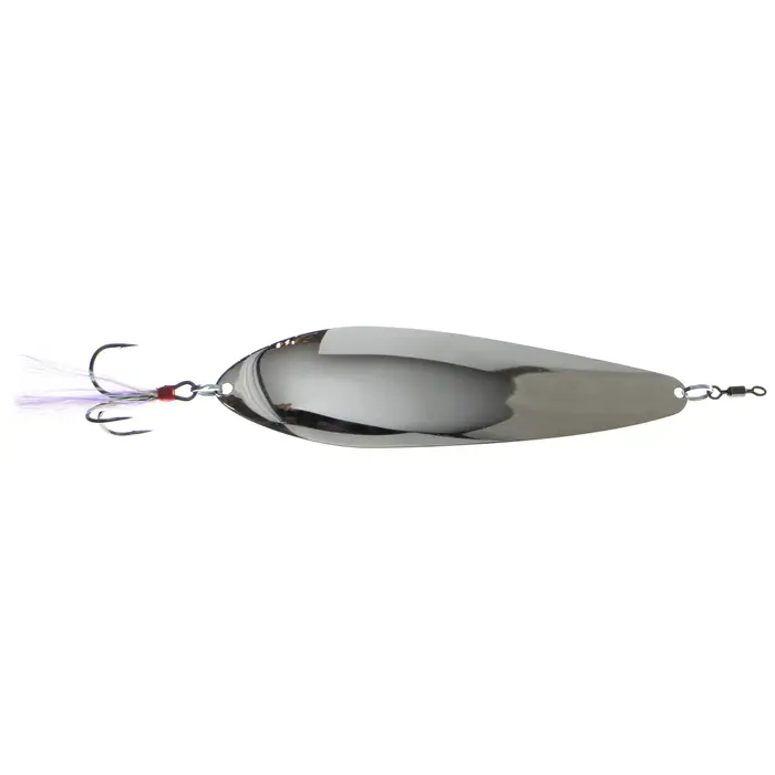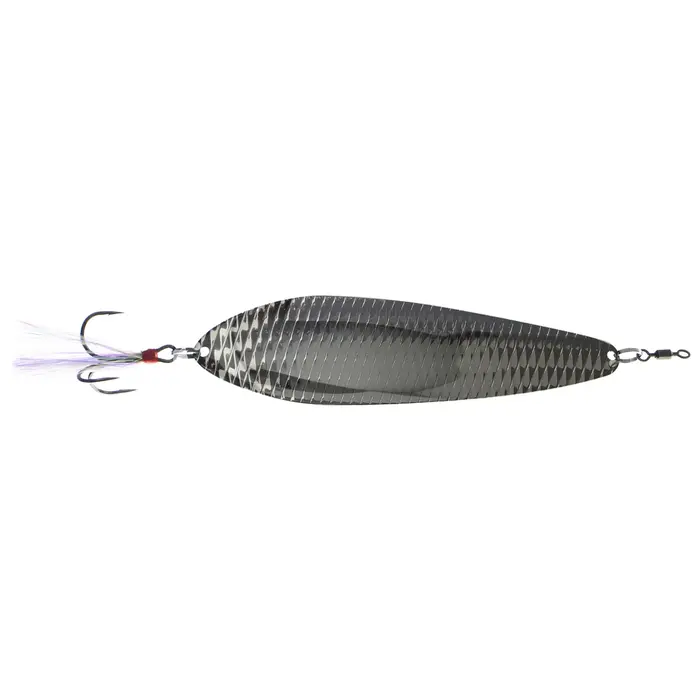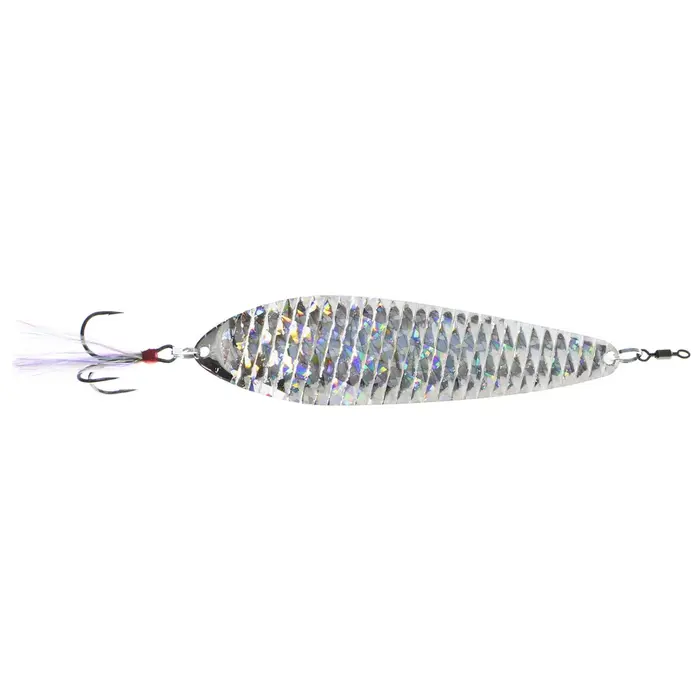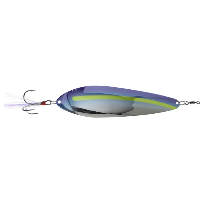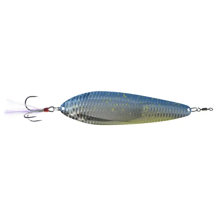 Crafted by pro angler and big bait expert Chris Zaldain, the Nichols Bass Mafia Larry Spoon is designed to attract large fish in offshore schooling scenarios. Its wide body produces an enticing cradling motion during descent. Boasting intricate details unmatched by other spoons in its category, the Larry Spoon features a textured scale pattern finish and vibrant paint schemes. Outfitted with premium components, including a razor-sharp dressed treble hook, a high-quality ball bearing swivel, and a sturdy split ring, the Nichols Bass Mafia Larry Spoon delivers a robust profile paired with dynamic action.