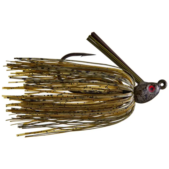 With a streamlined, baitfish-like design and a forward-weighted head, the Dirty Jigs Compact Swim Jig excels with the Alabama Shake technique. Equipped with a sharp 4/0 Gamakatsu hook, it’s built tough for braided lines to tackle big fish in dense cover. Offered in multiple colors and sizes to mimic local prey, each jig includes a wire bait keeper to secure soft plastic trailers and lifelike 3D eyes for a realistic look, making it a go-to for triggering strikes from wary, hard-to-catch fish.