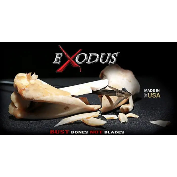 EXODUS® broadheads, entirely crafted in the USA, feature a groundbreaking compact design that powers through the toughest bones. Designed to match field point length for unmatched fixed-blade accuracy, they boast razor-sharp, long-lasting blades with a steep cutting angle, leading the broadhead market in penetration.