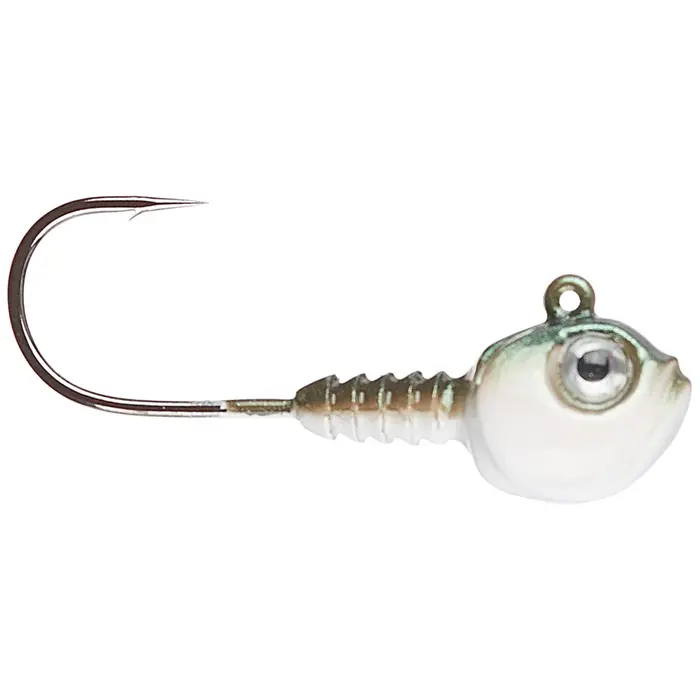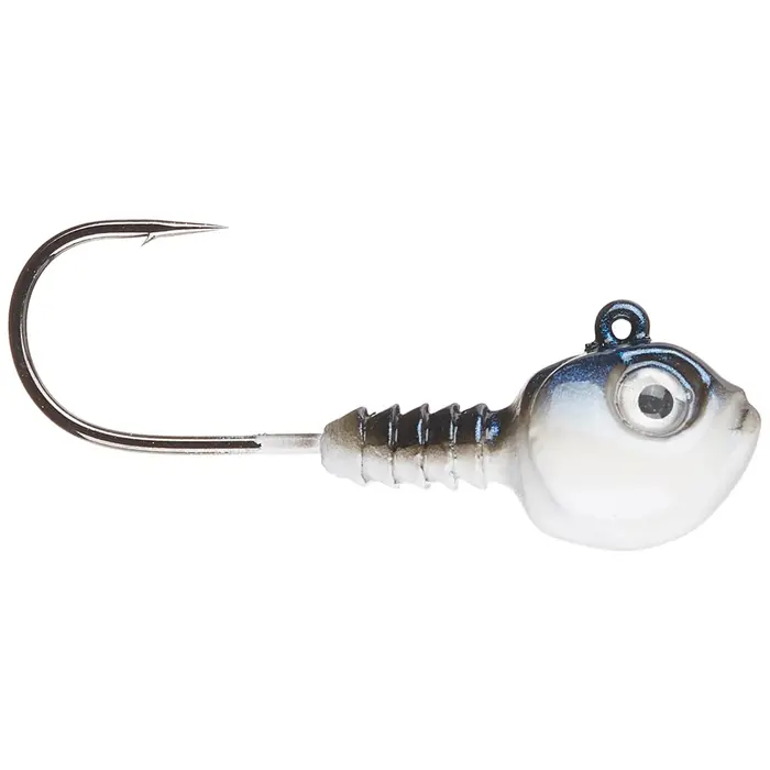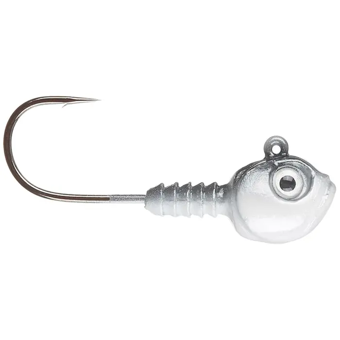 The Dirty Jigs Guppy Swimbait Jig Head is crafted for small swimbaits and the vertical jigging technique that shone at the 2017 B.A.S.S. Elite Series on Cherokee Lake. Featuring a 1/0 or 3/0 ultra-sharp 90-degree VMC hook, its jig head design ensures a horizontal lure position, perfect for vertical jigging and other small swimbait uses. The stacked cone keeper secures soft plastics using surface tension and friction, extending bait life with a tear-resistant design. Available in various hook sizes and weights to pair with your favorite swimbait, the Dirty Jigs Guppy Swimbait Jig Head is ideal for the East Tennessee-born vertical jigging method.