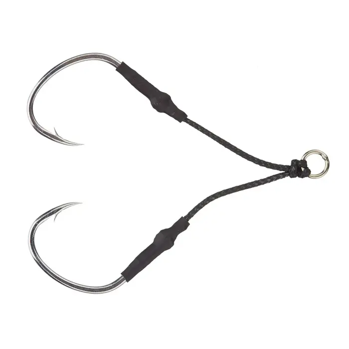 Nichols Magnum Stinger Trailer Hook, designed for Ben Parker Flutter Spoons, boosts hook-up ratios with easy attachment. Features two 3/0 Decoy hooks, heavy-duty cord, solid ring, and shrink tubing, ideal for tournament anglers. Read more about MAGNUM STINGER TRAILER HOOK