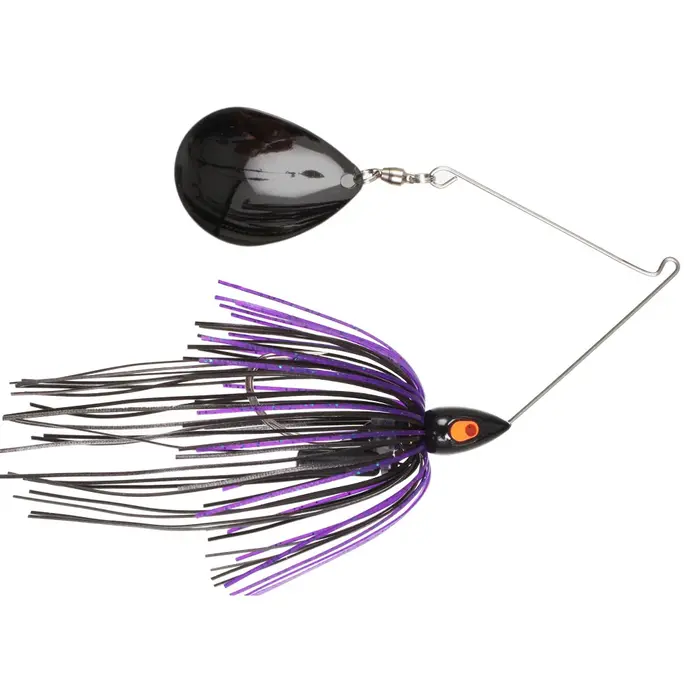 The War Eagle Night Time Spinnerbait features a single, large, black Colorado blade that produces a heavy thump to call in hunting nighttime bass. A dual chambered rattle provides additional fish attracting noise, and custom hand tied skirts add additional bulk and lifelike movement to the presentation. A premium Sampo swivel and super stainless wire help increase the blade's vibration and thump, and a super sharp Mustad NeedlePoint Hook seals the deal. Made in America using only quality materials and components, the War Eagle Night Time Spinnerbait is what you want tied on when the lights go out.