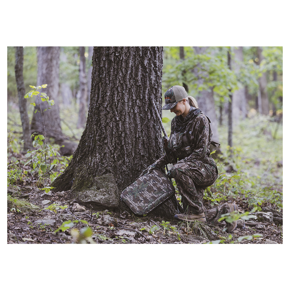 The adjustable harness combined with a padded back panel keeps your binoculars secure and close to your body while delivering all-day comfort during long hikes and quick setups. The main compartment features an adjustable closure and a generous U-shaped opening that easily accommodates a wide range of binocular sizes, giving you lightning-fast access when a gobbler suddenly appears.
