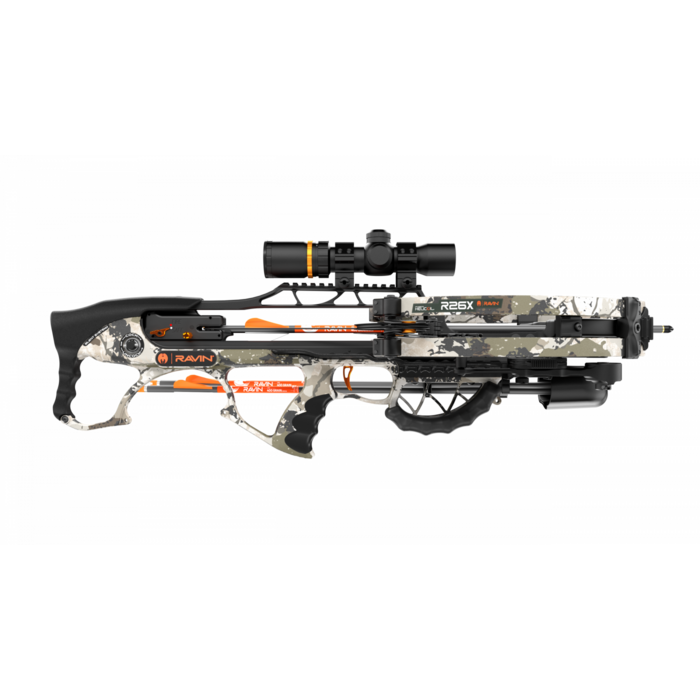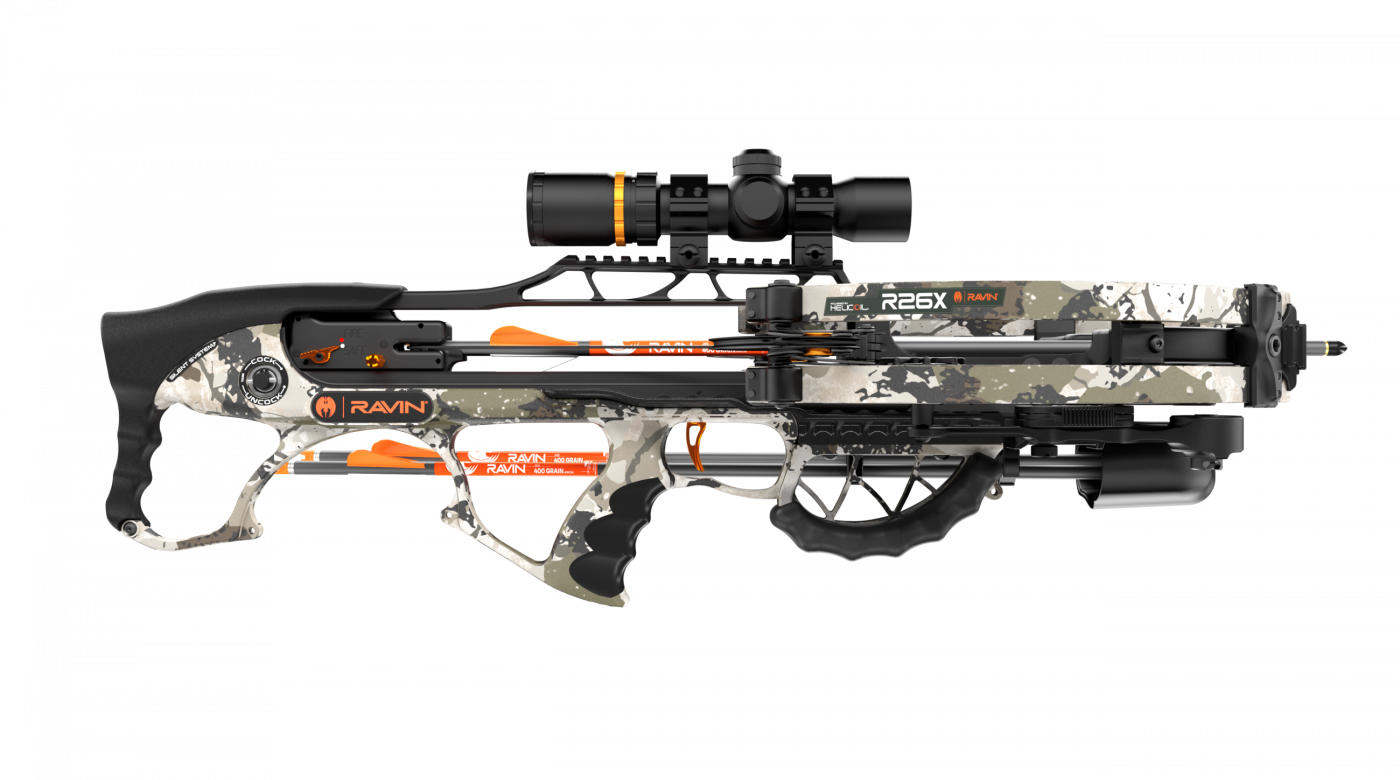 Ravin R26X: Ultra-compact 26”x5.75” bullpup crossbow, 6.5 lbs. 400 fps w/ HeliCoil (340º cam rotation), Versa-Draw silent cocking & Trac-Trigger. Apex accuracy + stealth agility for saddle hunters. Read more about R26X CROSSBOW