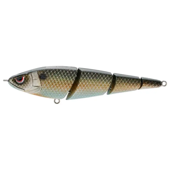Designed by Elite Series pro angler Bryan New, the Sashimmy Swimmer's three joint construction and four hard plastic section create a unique "S" swimming action when retrieved. Precisely designed for casting long distances and ideal for herring lakes, it moves perfectly even on fast retrieves. Featuring #4 round bend, black nickel Gamakatsu trebles for optimum hook penetration.
