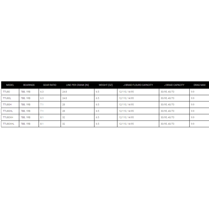 Tatula 80 also features 9.9 pounds of drag while most of the Tatula lineup features 11 pounds of drag. The Tatula 80 does feature slightly less drag because it’s a finesse reel. It’s designed ideally for 10 or 12 pound fluorocarbon or monofilament and 8 to 20 pound test braid.