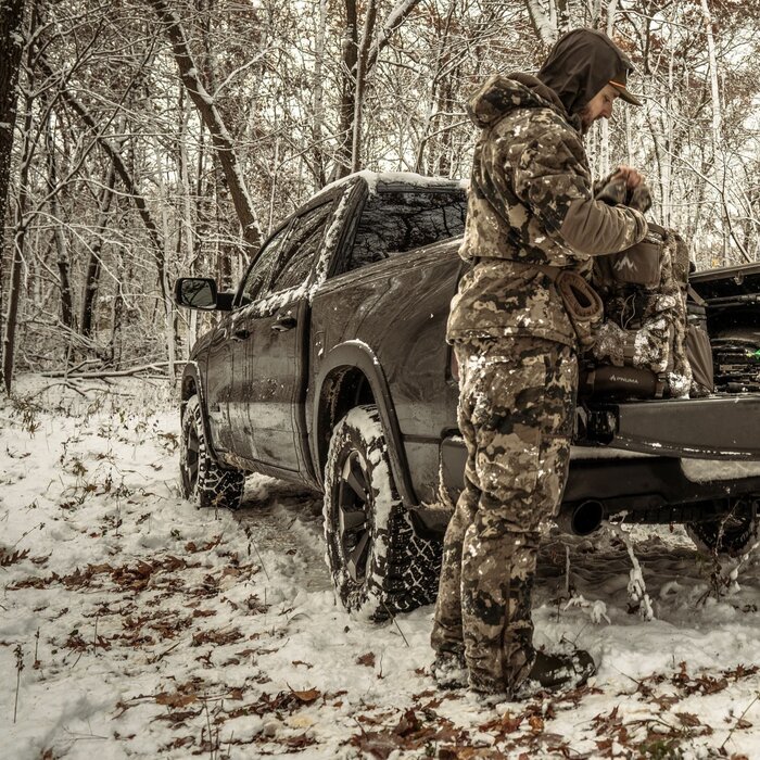 The Pnuma Vintis Pant is crafted for mid- to late-season hunts, blending stealth, warmth, and mobility. Its whisper-quiet microfleece exterior and PNUMABLOCK™ windproof membrane shield against harsh winds while maintaining silence. Strategic insulation warms without bulk, perfect for trekking or enduring cold sits. Stretch waistband inserts and articulated knees allow fluid movement, and zippered thigh pockets offer secure, accessible storage. Lightweight and discreet, the Vintis Pant enhances any cold-weather hunting kit.