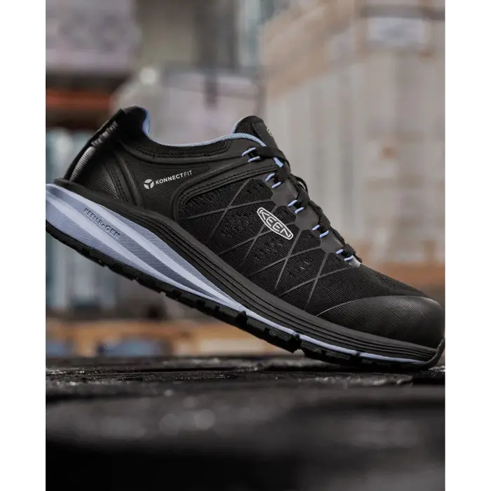 Designed for a woman’s foot and built with KEEN.ReGEN’s proven midsole cushioning, offering 50% energy return with every step, a breathable, engineered mesh upper, carbon-fiber toes, and the KonnectFit heel capture system, this work sneaker is ready for even the hottest of work days.