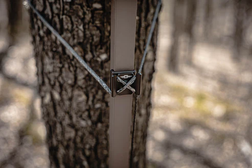 The Workhorse Climbing Sticks are budget-friendly and designed with features ideal for mobile hunters. They attach to trees using a patented DynaLite rope and tab system, which is lightweight, simple, and fast, without heavy buckles or mechanical parts. The sticks are easy to stack for transport using a StickLoc pin system and include a patent-pending Rope Containment System (RCS) for quick rope management.
